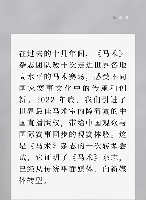 「起步 1982-1998」 內(nèi)蒙古是現(xiàn)代馬術(shù)的起點,40年前,相信傳奇教練張漢文先生,一定也是因為熱愛才會將一生奉獻(xiàn)給了馬術(shù)事業(yè)。從內(nèi)蒙古隊、新疆隊、西藏隊,再到廣州賽馬場,他培養(yǎng)了大量的人才,成為中國馬術(shù)的奠基人。 「創(chuàng)業(yè) 1998-2008」 有張漢文先生作為引路人,此后內(nèi)蒙古隊、新疆隊、西藏隊、廣東隊等省隊,開始了中國馬術(shù)人奮勇向前,不懼困苦的道路。 「發(fā)展 2008-2022」 經(jīng)歷了起步期與創(chuàng)業(yè)期的崢嶸歲月,直至 2008 年,申奧成功的火焰點亮了中國馬術(shù),成為重大的分水嶺,中國馬術(shù)開始向社會化、國際化、市場化轉(zhuǎn)變,隨后吸引了更多新生代愛上馬術(shù)運動,走向職業(yè)化的道路,成為可貴的后備軍。 2006 年,在中國還很難找到與馬相關(guān)的資料,憑著熱愛,《馬術(shù)》雜志創(chuàng)刊。隨著 2022 年這期中國馬術(shù) 40 年紀(jì)念刊的完成,《馬術(shù)》也成為了垂直行業(yè)唯一連續(xù)出版 17 年的雜志。 《中國馬術(shù)40年特刊》的制作周期很長,幾個月的采訪與拍攝,我們找到了多位 80 年代就開始跨上馬背的騎手和從業(yè)者。從少年到古稀,他們一直延續(xù)著馬術(shù)生涯,也是因為熱愛。這些成熟騎手有的依舊活躍在高級別的馬術(shù)賽事中,有的成為教練,或俱樂部經(jīng)營者,推動著行業(yè)的發(fā)展,他們是馬術(shù)運動的寶貴資產(chǎn)。熱愛,不僅是一種生命姿態(tài),更是一種生命能力。 「運動馬」 馬術(shù)運動的精髓是馬與騎手之間的合作。有的騎手在采訪期間談到與自己相伴多年的老馬時,甚至潸然落淚。40年的回顧我們也沒有遺漏這些為推動馬術(shù)競技水平作出貢獻(xiàn)的馬,我們梳理出了十匹重要的運動馬,這些擁有著勇敢之心的馬匹,幫助騎手挑戰(zhàn)一個接一個的高度,應(yīng)該被記住和懷念。 「青少年」 中國馬術(shù)還有長路要走,我們的馬匹繁育調(diào)教水平還處于探索初期,我們青少年人才梯隊的建設(shè)布局初見端倪,馬術(shù)俱樂部用地非常不穩(wěn)定,還需政策的支持……而這些都決定著中國馬術(shù)發(fā)展的質(zhì)量,以及能走多快、能走多遠(yuǎn)。 「外籍教練」 中國馬術(shù)40年,其實是個開始。 馬術(shù)運動的發(fā)展首先需要打開眼界去突破認(rèn)知。從 90 年代新疆隊最早出國去吉爾吉斯斯坦訓(xùn)練,帶回了先進的理念,到其他省區(qū)隊紛紛走出國門去訓(xùn)練與交流,再到之后多位外籍教練進入中國,在這個“走出去,請進來”的過程里,國際力量的支持不僅幫助中國訓(xùn)練出優(yōu)秀的馬術(shù)騎手,提高了運動馬的調(diào)教水平,而且對中國馬術(shù)行業(yè)的正確觀念意識起到了引導(dǎo)作用。 |