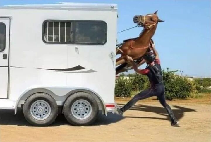 有些馬非常不愿意進入拉馬車,裝車的過程很容易變成一場混亂的“拉鋸戰(zhàn)”,最后要靠前拉后趕、大吵大叫一番才能讓馬上車,而那些馬也會因此被貼上“脾氣不好””固執(zhí)““膽小”的標簽。 圖|那個坡道看起來跟巖漿似的! 但如果有一個辦法,可以讓任何馬愿意進入拉馬車,你會想試試嗎? 圖|一個有點奇怪,但可以在1分鐘之內(nèi)把馬裝上車的辦法 (不是要介紹這個) 首先我們要搞清楚: 馬為什么會怕拉馬車? 作為被捕食者,馬有“戰(zhàn)或逃”反應,它們喜歡呆在大而開放的空間里,因為在那里它們很容易看到捕食者接近,可以快速逃跑。 而你永遠不會看到被捕食者在狹窄的空間里休息,如果捕食者出現(xiàn),它們很容易被困住,走投無路。拉馬車內(nèi)正是這樣一個會讓馬感到被困住的空間。 馬對于任何不存在于馬房或放牧場中的物體都很警惕,也特別討厭會移動和發(fā)出噪音的物體。 這就是為什么馬通常都不喜歡,甚至害怕拉馬車。 站在馬的角度來看,走上拖車可能是一種痛苦,尤其是在馬不明白拖車到底會不會傷害它的時候。 如何將馬帶上拉馬車: 教學開始 適應拉馬車的存在 首先確保你的馬在拉馬車附近感到舒適,如果它感到不舒適、不自在的話,它就不會想進去。 找到一個馬能放松下來的距離,從那里開始,面向拉馬車,一邊讓馬在你身前從一側走到另一側(后文統(tǒng)稱為“發(fā)送練習”),一邊慢慢靠近拉馬車。最后,保持在離拉馬車差不多兩米的距離,繼續(xù)讓馬從你身前走。 一定要在拉馬車的三側(兩側和后方)都進行發(fā)送練習,因為很多馬會在你牽它上車的過程中,逃到車的側面,以此來逃避上車。通過這個練習可以讓馬明白,無論它朝哪里走,你都能控制它的方向。 三側的練習都結束后,可以檢驗一下成果。請你背靠著拉馬車的后部,不移動雙腳,僅通過牽引繩的動作,讓馬從車的一側走到另一側。必要時可用調(diào)教鞭輔助。 Tips 一切表現(xiàn)得越自然越好,就好像你們只是在進行日常訓練,而旁邊剛好有一輛拉馬車。這樣馬就能越快越專注于訓練。 適應坡道 這一步是為了幫助馬適應它走上拖車時聽到的噪音以及它腳下的運動。 如果你跳過這一步,直接讓馬踏上拖車,當它第一次聽到這種聲音并感覺到拖車在它腳下移動時,它會驚慌失措。 在馬的腦海中,當你把它裝上拖車時,你就是在把它帶進一個狹窄、黑暗的洞穴。所以,千萬不要讓上車這件本身已經(jīng)很可怕的事情變得更可怕。 在降下坡道時,如果這匹馬之前對于上車有過不好的經(jīng)歷,那它可能會開始緊張,并懷疑接下來的動作。 這個時候你要做的就是讓它適當走動,讓它將注意力集中到你身上。 隨后,讓馬從一側踏上坡道,只需要一兩步即可。一旦它成功地邁出了一兩步,就不要再強迫它前進,而是帶它轉身離開坡道。 接下來進行多次嘗試,讓它走上坡道,每次都看看是否能讓它多邁一步,再多邁一步。 最后,你希望它能繞著你朝一個方向走一個小圈,就像平時打圈一樣,不過有一部分是在坡道上進行的。保持同一方向,是為了先讓它單側的大腦適應這項工作。 為了避開坡道,有些馬可能會撞到你身上,甚至企圖把你擠走。 注意,如果你看到你的馬侵入你的空間,請舉起馬鞭來擋住自己,并在必要時將馬趕出你的空間。 如果你不懂得保護自己的空間,而是在它向你走來時給他讓路,那么它就會覺得它可以通過擠開你來避免站上坡道。 對于馬來說,誰先讓步,誰就輸了,不要做讓步的那一方! Tips 一開始,馬可能會沖過坡道,因為那是它下意識的舉動。但多嘗試幾次后,它就會獲得信心,并放慢速度,開始思考。多給它點時間! 每當馬想停下來嗅聞坡道或是用前蹄輕刨坡道時,放手讓它做吧,這是它自己的安檢方式。 它必須150%確認這輛車不是來抓它的,是安全的,否則你無論如何也說服不了它上車。 當馬在坡道上停住,放松休息時,你可以輕輕給它按摩,這樣它會意識到,當他站在坡道上時,它可以休息和放松,而當它走下坡道后,它就要工作了。 |