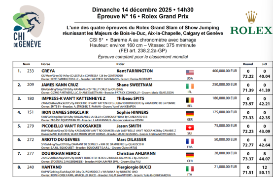 “在馬術運動中,挫折是家常便飯。但我把每一次挫折都當作一個提醒,提醒我要保持正確的心態(tài),保持頭腦清晰,積極向前。我相信馬兒在自信和良好的氣場下會發(fā)揮得更好,會百分之百地信任你。” ?CHIG 在勞力士與日內瓦國際馬術節(jié)合作25周年之際,一場匯聚全球頂尖騎手的巔峰對決悄然拉開大幕。日內瓦當?shù)貢r間12月14日,2025日內瓦國際馬術節(jié)的壓軸賽事——勞力士大獎賽在瑞士日內瓦Palexpo展覽中心如期舉行。 經(jīng)過兩輪扣人心弦的比賽,美國名將、勞力士代言人肯特·法靈頓(Kent Farrington)搭檔11歲的奧爾登堡母馬“Greya”,以附加賽零罰分、40.04 秒的表現(xiàn),摘得本屆勞力士大獎賽的桂冠,彌補了兩天前他在勞力士IJRC十強決賽中惜敗給英國名將斯科特·布拉什的遺憾。 賽場直擊:高手過招,精彩紛呈 首輪比賽中,障礙的高度和復雜性給所有參賽騎手帶來了巨大的挑戰(zhàn)。前兩位出場的愛爾蘭騎手丹尼爾·科伊爾(Daniel Coyle)和英國騎手本·馬赫(Ben Maher)都成功完成了比賽,但都因超時被罰1分。直到第十位出場的意大利騎手皮爾杰吉奧·布奇(Piergiorgio Bucci)策騎“Hantano”,才完成了第一個零罰分的成績。 然而,隨后的比賽中,瑞士本土騎手們都遭遇了一些挫折,包括勞力士代言人馬丁· 福斯(Martin Fuchs)和勞力士代言人史蒂夫·戈爾達(Steve Guerdat)都未能幸免,他們在雙重組合障礙的第一道障礙上紛紛失誤。 勞力士代言人肯特·法靈頓搭檔“Greya” 在日內瓦國際馬術節(jié)勞力士大獎賽 ?Rolex/Thomas Lovelock 盡管如此,愛爾蘭騎手肖恩·斯威特納姆(Shane Sweetnam)和“James Kann Cruz”,以及法國騎手馬克·迪拉瑟(Marc Dilasser)和瑞士騎手杰森·史密斯(Jason Smith)都成功完成了零罰分。 最終,共有7位男騎手和1位女騎手晉級到競爭激烈的附加賽,而這唯一的女騎手就是勞力士代言人索菲·希納斯(Sophie Hinners)。 附加賽:電光火石,分秒必爭 附加賽的賽道更加緊湊,對騎手和馬匹的速度和靈活性提出了更高的要求。肖恩·斯威特納姆率先出場,以零罰分和一個相當快的速度完成了比賽。隨后出場的杰森·史密斯在后半程找到了節(jié)奏,但未能超越斯威特納姆的時間。 ?CHIG 緊接著,肯特·法靈頓搭檔“Greya”登場。這對組合以驚人的速度和精準度飛躍障礙,最終以比肖恩·斯威特納姆快1.35秒的優(yōu)勢問鼎冠軍,這也是他繼2017年后,再次斬獲日內瓦國際馬術節(jié)勞力士大獎賽的冠軍。 ?CHIG “這就是我們在日內瓦看到的比賽水平——最好的馬、最好的騎手,勝負往往只差幾十分之一秒。周五我輸?shù)裟且粓?,我對自己很生氣?/span>因為馬跳得非常好,而我在最后做了一個錯誤判斷。所以我今天非??释倪M自己的表現(xiàn),這次非常成功?!?/span> ?馬術在線/何亦紅 冠軍感言:人馬合一,榮耀加冕 賽后的發(fā)布會上,肯特·法靈頓毫不吝嗇對“Greya”的贊美,坦言冠軍的誕生,“Greya”功不可沒:“‘Greya’真是一匹了不起的馬。它非常有天賦,我們所做的,只是幫助它發(fā)揮出它最好的狀態(tài),就像今天它展示的那樣。 它非常謹慎,跳躍時身體異常靈活。這是它在賽場上最大的優(yōu)勢:速度驚人,身體柔軟,腿收得很好。在馬廄里,它是當之無愧的女王,極度自信,絕對是這群馬的老大。今天贏得勞力士大獎賽,無疑是它職業(yè)生涯中迄今為止最輝煌的一役!” ?馬術在線/何亦紅 “我真的非常希望今天能有個好結果?!狈`頓繼續(xù)說道,“前幾天,我對自己有些惱火,因為我覺得‘TOULAYNA’跳得非常好,但我的表現(xiàn)卻未能達到應有的水平。這讓我給自己施加了巨大的壓力,帶著這種心態(tài)來到日內瓦,我告訴自己,今天我必須做得更好。我對今天的結果非常滿意,也對我的馬感到無比驕傲,更對整個團隊能夠讓這一切成為可能,感到由衷的開心。” ?馬術在線/何亦紅 當記者問及他在勞力士IJRC十強決賽中惜敗的感受,以及如何調整心態(tài)重新找回最佳狀態(tài)時,法靈頓坦率地分享道:“在馬術運動中,挫折是家常便飯。因為從概率上講,你輸?shù)拇螖?shù)一定會遠多于贏。最讓人沮喪的,是當你感覺馬兒狀態(tài)絕佳,而自己卻不在狀態(tài)。對我來說,馬術就是最極致的團隊運動——馬和騎手共同組成一個最佳組合。在結果上,我感覺自己辜負了馬兒,因為我未能發(fā)揮出它應有的最佳水平。 但我把每一次挫折都當作一個提醒,提醒我要保持正確的心態(tài),回到賽場,新的一天,重新開始。每次跨上馬背,我都會問自己:今天我要用什么心態(tài)去騎?我不能帶著過去的怨氣,也不能帶著生活中的瑣事。上馬時,我盡量保持頭腦清晰,積極向前。我相信馬兒在自信和良好的氣場下會發(fā)揮得更好,會百分之百地信任你。我嘗試用這樣的心態(tài)去騎每一匹馬?!?/span> 談及明年的計劃,法靈頓表示,勞力士系列賽事始終在他心中占據(jù)重要位置。他最大的心愿是讓她保持良好的狀態(tài),能夠參加這些高水平的比賽,這是他最關注的目標。 ?馬術在線/何亦紅 觀眾熱情:座無虛席,再創(chuàng)新高 本屆日內瓦國際馬術節(jié)吸引了創(chuàng)紀錄的49,200名觀眾,他們共同見證了一場場精彩絕倫的馬術盛宴。賽事組織方宣布,2026年12月9日至13日將舉行日內瓦國際馬術節(jié)100周年慶典,屆時可能會增加一天比賽,為觀眾帶來更多驚喜。 肯特·法靈頓在2025年日內瓦國際馬術節(jié)