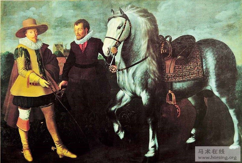 小阿德里安·范紐蘭德(1587 - 1658 年) 紳士、馬弁與馬 1624 年 布面油畫 207.5cm×302.5 cm 巴爾的摩,沃爾特藝術(shù)博物館 這幅繪畫作品描繪了一位有錢的、很有可能是一名貴族的紳士,還有他漂亮的駿馬和馬弁,令人回憶起安特衛(wèi)普17 世紀(jì)時的黃金時代。這座城市因阿爾貝特大公爵而興盛。他不但極大地促進了藝術(shù)的發(fā)展,同時也資助了許多藝術(shù)家,其中就有他的宮廷畫師魯本斯。16 世紀(jì)時,安特衛(wèi)普曾遭受西班牙人的洗劫,在反抗斗爭中人口減少了近一半。但很快,這座城市就從這次毀滅性的打擊中恢復(fù)過來,開始了戰(zhàn)后重建,經(jīng)濟也逐漸騰飛。 范紐蘭德筆下健壯的駿馬屬于今天被人們稱為“重型馬”的一種,散發(fā)出充沛的生氣以及樸素的魅力。當(dāng)時能擁有這種駿馬,是自己聲望及雄厚身家的證明。盡管這種駿馬體態(tài)優(yōu)美,身材健壯,它仍是一種重型馬,可以出色地完成拉犁或負(fù)重的工作。這讓人回想起中世紀(jì)時的佛蘭德馬,這種馬負(fù)重能力強,能用于中古騎士的馬上比武運動,是比利時布拉邦遜馬的前身。 |