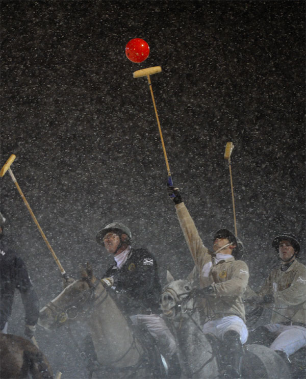 這張照片是于2009年8月歐洲冠軍杯比賽期間在英國溫莎城堡里拍攝的。照片里,伴著皎潔的月光,來自奧地利的女騎手Victoria Max-Theurer正在溫柔地撫摸著她的馬匹Augustin Old。其拍攝手法和《馬術(shù)》雜志2010年10月刊發(fā)表的“星系馬球大賽”那張圖片如出一轍。(Material : NIKON D3 - 400 mm and x1.7 extender for the moon. It's not a photoshop picture !) 這張照片是2009年1月我在法國梅杰夫舉辦的日內(nèi)瓦馬球大師賽期間拍攝的。我一到梅杰夫就因為有幸目睹到“迷你暴風雪”而倍感興奮。零攝氏度的空氣中混雜著風和雪,讓我感覺置身在零下15攝氏度說話的時候舌頭都開始打顫了,而在這種情況下拍照既新奇又有趣。不過,我和我的設(shè)備都遇到了麻煩:風雪交加,又冷又缺少足夠的光線......但轉(zhuǎn)念我又一想,這種奇異的環(huán)境一定可以讓我拍出精彩的馬球照片,果然被我言中了。(Material : NIKON D3 - 400 mm) 這張照片是用16毫米魚眼鏡頭遙控照相機在法國北部的尚蒂伊拍攝的,這是我最喜歡的其中一張作品。(Material : NIKON D200 - 10,5 mm - Remote camera) 這張照片是于2010年4月3日在法國巴黎大宮內(nèi)拍的。照片抓拍了來自比利時的Jos Lansink騎乘馬匹King Kolibri起跳騰飛的精彩瞬間。場地障礙賽難得在巴黎大宮內(nèi)舉辦,于是我架設(shè)一臺可以拍攝得到大宮屋頂?shù)倪b控照相機;陽光從那里傾瀉而下,瞬間一幅美妙的照片匯聚而成。(Material : NIKON D3 - 16 mm and remote control.) |