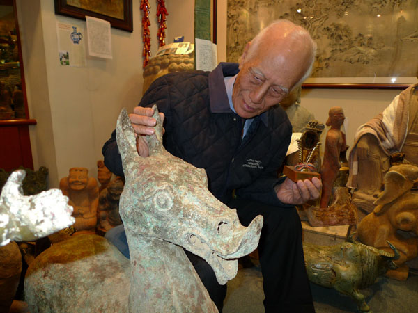 蔡希良,一位與馬結(jié)緣的80歲老人。他1932年初生在北京,1953年考入北京體育大學(xué),曾經(jīng)參加過(guò)第一屆全運(yùn)會(huì)。文革后于1981年定居香港,開(kāi)始從事古董收藏。今天,老人家希望通過(guò)《馬術(shù)》雜志,讓他的收藏能告訴后人中國(guó)馬文華的精深和他經(jīng)歷的香港賽馬變遷。 《馬術(shù)》:您是怎么做起古玩行當(dāng)?shù)??還記得您最初到香港的時(shí)候,對(duì)香港的印象如何? 蔡希良:其實(shí)我很早就聽(tīng)說(shuō)香港有賽馬比賽。在我到香港的三年前,也就是1978年,沙田馬場(chǎng)剛建好。早在1971年,香港賽馬就已經(jīng)改為職業(yè)了,聽(tīng)說(shuō)那以前還有蒙古馬的比賽。記得我父親留下的畫(huà)中是有關(guān)于馬的,在我出國(guó)前曾經(jīng)想300元買(mǎi)給古樓后門(mén)橋文物店,但200元也不肯收。到了香港后,我去古玩店一問(wèn),上來(lái)就說(shuō)15000,我愛(ài)人一驚,老板以為嫌少,又加到了16000。而且當(dāng)時(shí)的古玩店沒(méi)有假貨。于是我想不如就干這行吧。 《馬術(shù)》:您對(duì)香港的賽馬有什么看法呢? 蔡希良:我覺(jué)得賽馬進(jìn)入職業(yè)是非常重要的。職業(yè)就是一個(gè)標(biāo)準(zhǔn),要有職業(yè)操守和職業(yè)道德,公平、公正是最為重要的,香港賽馬的發(fā)展是一個(gè)很好的例子,值得借鑒。我想,早晚一天內(nèi)地也應(yīng)該會(huì)開(kāi)設(shè)賽馬。我建議在初級(jí)階段應(yīng)先行投注香港馬,然后再逐漸走向職業(yè)軌道。香港的老百姓是全世界最喜歡賽馬的,一到大賽日,大街上門(mén)可羅雀,但賽場(chǎng)上卻比過(guò)節(jié)還熱鬧。我感覺(jué)內(nèi)地的體育彩票靠運(yùn)氣的成分多些,但賽馬卻不同。你要從資料上查每匹馬的資料,如:距離、晨操、馬主、練馬師、騎師等,綜合分析最終買(mǎi)那些獲勝概率高的馬,在這里,縱然運(yùn)氣有一定成分,但是專(zhuān)業(yè)知識(shí)絕對(duì)是必不可少的。而且隨著舉辦2008年北京奧運(yùn)會(huì)的馬術(shù)比賽,香港已經(jīng)從世界賽馬之都變?yōu)榱耸澜珩R術(shù)運(yùn)動(dòng)之都。 《馬術(shù)》:在您的收藏中,為什么會(huì)有那么多與馬相關(guān)的題材? 蔡希良:有兩個(gè)原因。首先是因?yàn)轳R在古代人生活中與人的伙伴關(guān)系地位,另外就是我本人對(duì)馬的深?lèi)?ài)。我最喜歡漢、唐年間的馬造型,我想漢唐時(shí)期中國(guó)十分富強(qiáng),所以你看那時(shí)的馬造型就體現(xiàn)了自信和張力,馬的文物是在我來(lái)到香港時(shí)所帶的文物中最多的一類(lèi),想找假的很難,現(xiàn)在找真的更是難上加難。有時(shí)我把不同朝代的馬放在一起,你就會(huì)很輕松地看出國(guó)家發(fā)展的興衰軌跡。我們的老祖宗真了不起,就說(shuō)漢武帝吧,能從西域引進(jìn)汗血寶馬把馬背上的匈奴人打敗,可想而知那時(shí)中原的騎兵是怎樣一支強(qiáng)大隊(duì)伍。 文/蔡猛 |