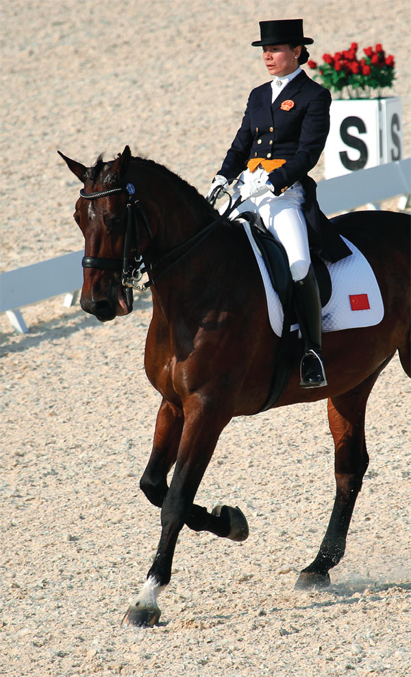 2010年11月11日,作為馬術(shù)項目nTo(技術(shù)官員),我來到風(fēng)景優(yōu)美的廣州從化,下榻于亞組委指定的碧水灣溫泉假日酒店。這里的服務(wù)絕對稱得上一流,熱情、微笑、周到、細致。在哪里還能找到這樣的服務(wù)呢? 第十六屆亞運會于2010年11月14日至24日在廣州從化馬術(shù)場成功舉辦。本文試圖以馬為主線、以比賽項目為標(biāo)題,談?wù)剚嗊\馬術(shù)的情況。 盛裝舞步賽 參加盛裝舞步賽的馬匹和運動員來自七個國家或地區(qū),分別是日本、中國、中國臺北、馬來西亞、韓國、中國香港和阿聯(lián)酋。能夠參加團體資格的有日本、中國、中國臺北、馬來西亞、韓國,而中國香港和阿聯(lián)酋僅參加盛裝舞步的個人比賽。 參加這項賽事的馬匹總數(shù)為23匹,其中騸馬13匹、公馬5匹、母馬5匹。馬匹的年齡最小的9歲,最大的18歲。分布情況為:9歲馬有4匹,10歲馬有2匹,11歲馬有1匹,12歲馬有5匹,13歲馬有2匹,14歲馬有3匹,15歲馬有3匹,16歲馬有1匹,17歲馬有1匹,18歲馬有1匹。參賽馬匹最多的品種是荷蘭溫血馬(KWpn),占8匹,其次是漢諾威(Hann)和丹麥溫血馬(DWB)各占3匹。 在11月14日進行的廣州亞運會馬術(shù)比賽上,中國隊實現(xiàn)歷史突破,獲得盛裝舞步團體賽銀牌,這是中國隊在亞運會馬術(shù)比賽項目第一次摘得銀牌。中國隊派出了廣東的蔡喬、黃焯欽、顧兵和新疆的劉娜參加比賽。因劉娜沒有發(fā)揮出自己的水平,整體狀態(tài)不佳,她得了全隊最低分,中國隊最終以0.166分的微弱之差輸給了韓國隊。馬來西亞隊獲盛裝舞步團體賽銅牌。 在盛裝舞步賽的運動員中,最亮眼的是馬來西亞28歲的女子舞步運動員庫贊德里亞(Quzandria nur mahamad)和她所騎乘的馬匹“帥小子”(Handsome),人長得漂亮,馬也高大俊美。這匹馬是2001年產(chǎn)的栗毛騸馬,品種是丹麥溫血馬,這馬的運步之優(yōu)美和流暢令人折服,據(jù)報道該馬價格合1500萬元人民幣。最終她獲得舞步個人銀牌,她的哥哥穆赫德(mahamad Fathil mD Qabil)奪得銅牌,金牌被首次參加國際大賽、年僅20歲的韓國隊騎手黃植(Hwang Young shik)騎乘馬匹“勞拉”(Laura)奪得。 在11月17日盛裝舞步個人決賽上,顧兵騎乘馬匹“吉祥”剛剛?cè)雸鲞€未開始比賽之際,觀眾爆發(fā)熱烈的掌聲和呼叫聲,造成馬匹受驚并尥蹶子,影響了人和馬的心理,盡管顧兵全力調(diào)整,但還是產(chǎn)生了幾個小失誤,最終獲得第七名。我國的另一名騎手黃焯欽獲得第六名。 三項賽 參加三項賽的馬匹共計30匹,來自七個國家或地區(qū),分別是中國、卡塔爾、中國香港、泰國、日本、哈薩克斯坦和韓國。也分別代表七個團體隊,每個隊有4名運動員,共28人,另外,泰國和日本各有1名。 按馬的性別分,騸馬20匹、母馬7匹、公馬3匹。馬的年齡以9歲、10歲馬居多,年齡最小的馬為6歲,最大的馬為16歲。具體分布為:6歲馬1匹,7歲馬3匹,8歲馬2匹,9歲馬7匹,10歲馬7匹,11歲馬2匹,12歲馬1匹,13歲馬3匹,14歲馬2匹,15歲馬1匹,16歲馬1匹。馬的品種達14種以上,其中最多的是純血馬,占5匹,塞拉法蘭西馬(sF)有4匹,霍士丹(Holsteiner)和盧西塔諾馬(Lusitano)各占3匹,愛爾蘭運動馬(isH)有2匹。 三項賽,如果記不住項目的順序,可以用“吾也愛”(“舞步、越野、障礙”)來幫助記憶,即第一天是盛裝舞步,第二天是越野賽,第三天是場地障礙賽,因分三日完成,故也叫三日賽。 在三項賽中,表現(xiàn)非常突出的是泰國女騎手尼娜·利功(nina Ligon),她所騎乘的馬匹叫“猜泰”(英文名:Chai Thai,丹麥溫血馬,2001年生,騸馬),在舞步賽中獲得第一名,在越野賽中又獲得第一名,是沖擊冠軍的最佳人選。但是,很可惜在障礙賽中兩輪各打落一桿,扣8分,最后屈居第四名。不過,她為泰國隊獲得團體銀牌做出了重要貢獻。 另一個熱點是獲得三項賽個人金牌和團體金牌的騎手佐藤賢希(sato Kenki),他原來是一名“80后”的和尚,他的父親和爺爺也是,他們在日本主持一家寺廟。佐藤賢希在10歲就當(dāng)了和尚,平時除了潛心向佛外,還經(jīng)營一家馬術(shù)俱樂部并騎馬。佐藤賢希在舞步比賽中獲得第二名,在越野賽中亦獲得第二名,并在場地障礙賽中取得了零罰分,最后三項合計獲得個人冠軍。 11月20日三項賽團體金、銀、銅牌分別為:日本、泰國、中國。中國隊所獲得的這塊銅牌是中國在亞運會該項目上的歷史最佳戰(zhàn)績。個人金、銀、銅牌分別為:(日本)佐藤賢希、(韓國)田在植、(日本)大巖義明。中國選手楊華列第五,梁銳基列第六,李靜敏列第十八,劉同晏列第十九。 場地障礙賽 場地障礙賽是最精彩的比賽,觀眾最多。參加場地障礙賽的馬匹數(shù)量為42匹,來自14個國家或地區(qū),分別是:中國、巴林、文萊、中國香港、印度、日本、韓國、沙特阿拉伯、馬來西亞、卡塔爾、新加坡、敘利亞、中國臺北、阿聯(lián)酋。其中能夠組成團體的有八支隊伍:中國、中國香港、日本、韓國、沙特阿拉伯、卡塔爾、中國臺北、阿聯(lián)酋。 按馬匹的性別統(tǒng)計,有27匹騸馬、9匹公馬、6匹母馬。年齡最小9歲,最大16歲。9歲馬有4匹、10歲馬有9匹、11歲馬有10匹、12歲馬有8匹、13歲馬有5匹、14歲馬有4匹、16歲馬有2匹。由此,可以看出本次比賽的馬匹中以10-12歲的馬所占的比例最大,約占總數(shù)的64%。按馬品種分,以荷蘭溫血馬(9匹)為最多,其次為霍士丹(6匹)、塞拉法蘭西馬(5匹)、比利時溫血馬(BWp,4匹)、奧登堡