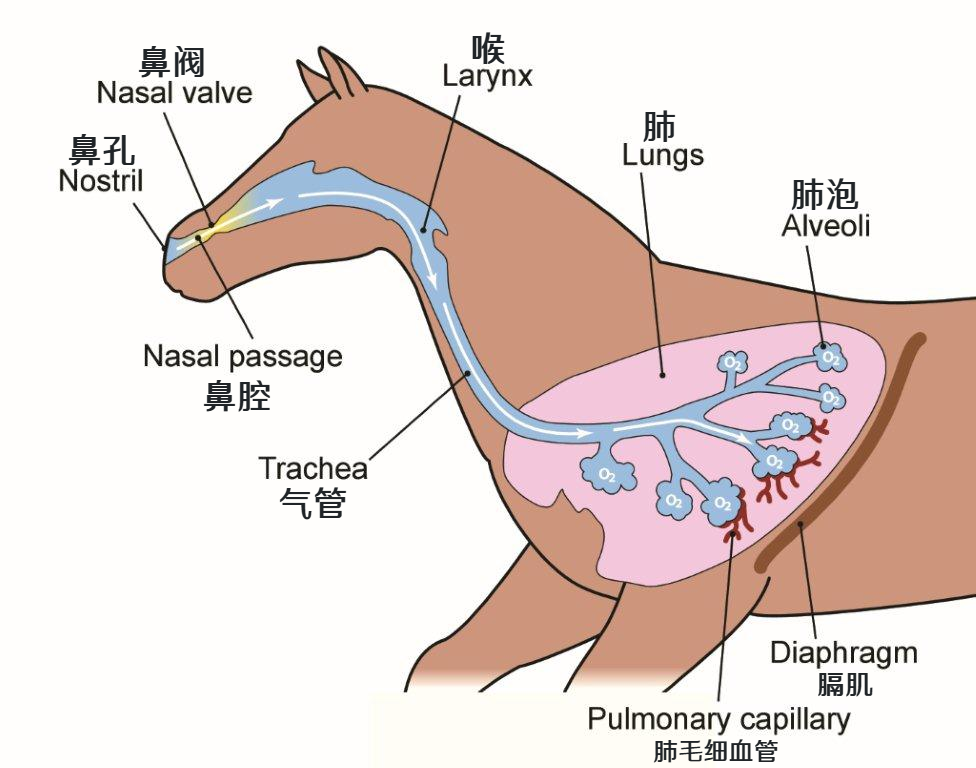 在吸氣過程中,如果馬匹鼻腔外壁發(fā)生塌陷,可能會限制氣流,進一步升高肺部微血管壓力。