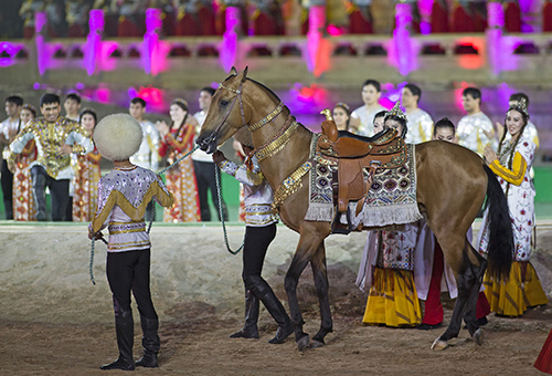 關于阿哈爾捷金馬,民間流傳有很多故事。如果你不太確定它的身份,那么我想它的另一個名字“汗血寶馬”,一定會讓你恍然大悟。汗血寶馬的傳奇故事不勝枚舉,最令大眾感覺到有爭議的說法是:汗血寶馬在賽場上驍勇奮戰(zhàn)時,究竟會不會有血液從毛孔中滲出? 汗血寶馬產(chǎn)于土庫曼斯坦科佩特山脈和卡拉庫姆沙漠間的阿哈爾綠洲,是經(jīng)過 3000 多年培育而成的世界上最古老的馬種之一。它奔跑速度快,耐力強,常用作長距離的騎乘馬(跑千米僅需 1 分鐘)以及場地障礙和盛裝舞步馬,目前在國際上的售價最高可達千萬美元。 2000 年,被世人公認的汗血寶馬原產(chǎn)地國家土庫曼斯坦前總統(tǒng)尼亞佐夫向中國送上了象征良好友誼的國寶作為禮物,時任國家主席江澤民得到的這匹馳名天下的“天馬”當時只有 5 歲,名叫“阿赫達什”。在抵達中國前,它被養(yǎng)在總統(tǒng)馬房,因其父輩曾是國際馬匹速度賽的冠軍而備受呵護。為了這匹汗血寶馬中的精品馬順利來到中華大地,我國曾花費 70 萬元租賃伊爾 -76 型專機飛越絲綢之路接來“這位尊貴的客人”。隨著阿赫達什的到來,中國馬場的工作人員也真正地認識到原來汗血寶馬并不會流血,土庫曼斯坦專家給出的官方解釋為:“所謂的汗血可能是由于馬的皮膚較薄,奔跑時能看見血液在血管中流動?!?/div> 現(xiàn)在阿赫達什的新家位于京津交界的國家汗血寶馬中心,每個清晨它都會在一個木柵欄圍成的圓形戶外場地里曬太陽,沐浴陽光是它每天的必修課。阿赫達什體型微瘦,四肢修長,走起來步伐十分輕盈。一身黑色的毛皮,在陽光下閃閃發(fā)亮。長長的脖頸上黑色的鬃毛讓它顯得十分精神。 在中國的新生活對阿赫達什來說充滿了新鮮感,當然,也有很多不適應。最初它進食草料的量時多時少。飼養(yǎng)員發(fā)現(xiàn),它在家鄉(xiāng)時草料中的苜蓿草占有很大比重,而這里的馬場草料中,禾本科草占的比重比較大。為了讓阿赫達什吸收更多的營養(yǎng),工作人員為它特別調(diào)制了一款中國大餐,每天除了國外進口的特級苜蓿草和東北運輸來的特級牧草,還要定時投放胡蘿卜、燕麥、玉米、復合維生素及微量元素等精飼料,各種成分的比例都經(jīng)過研究和反復試驗,以保證營養(yǎng)均衡。喂食有嚴格的時間表,每天的 5 時、12 時、20 時正點喂料。漸漸地,工作人員細心、耐心、科學的調(diào)整幫助阿赫達什適應了遷移帶來的生活環(huán)境上的改變。 2006 年,尼亞佐夫再次訪華,又贈送給時任國家主席胡錦濤一匹汗血寶馬——阿爾喀達葛。阿爾喀達葛也是一匹三蹄踏雪的黑馬,額頭有一顆像鉆石一樣的白星。它比阿赫達什小 7 歲,兩兄弟比鄰而居,相處甚是和諧。2012 年,國家汗血寶馬中心采用現(xiàn)代繁殖技術,為阿爾喀達葛進行了汗血馬純種繁殖。2013 年,阿爾喀達葛有了 8 個孩子——“7 女 1 男”,這是阿爾喀達葛的第一批純種后代。汗血寶馬作為優(yōu)良基因庫,能為馬的育種提供非常好的基因,這一點幾乎是馬界專家的共識。今年,阿爾喀達葛又多了 8 個“孩子”。這些后代全部歸我國所有。 2014 年 5 月 12 日晚,習近平與土庫曼斯坦總統(tǒng)別爾德穆哈梅多夫到勞動人民文化宮,共同出席世界汗血馬協(xié)會特別大會暨中國馬文化節(jié)活動。習近平代表中方接受別爾德穆哈梅多夫贈予的一匹汗血寶馬。在接受汗血寶馬時,習近平稱贊汗血寶馬是享譽世界的優(yōu)良馬種。這是一匹金海騮汗血公馬,年齡 4 歲,名字是 Pudak(音譯:普達克;土庫曼語的意思是植物的根)。普達克擁有黃金般質感的“金毛”,而這種金色唯汗血寶馬獨有;它的體形非常好,其中一蹄為白色。據(jù)中國馬業(yè)協(xié)會理事王振山介紹,之前獲贈的兩匹汗血寶馬都是中方專機接回,而這次是土方當面贈予。 在土庫曼斯坦,有一句家喻戶曉的諺語,把它翻譯成中文是這樣說的:早晨起來,第一件事是向父親和母親請安,第二件事就是向自己的馬問好和請安。不難看出,汗血寶馬在土庫曼國寶級的地位當真名不虛傳,國徽和貨幣有它的身影,就連土庫曼斯坦電視臺新聞節(jié)目始播前的屏幕上也會出現(xiàn) 5 匹汗血寶馬并排向前駛去的畫面。汗血寶馬作為如此重要的禮物當然也只能贈送給最尊貴的朋友,中土兩國的友誼也將因此得以見證與延續(xù)。 |